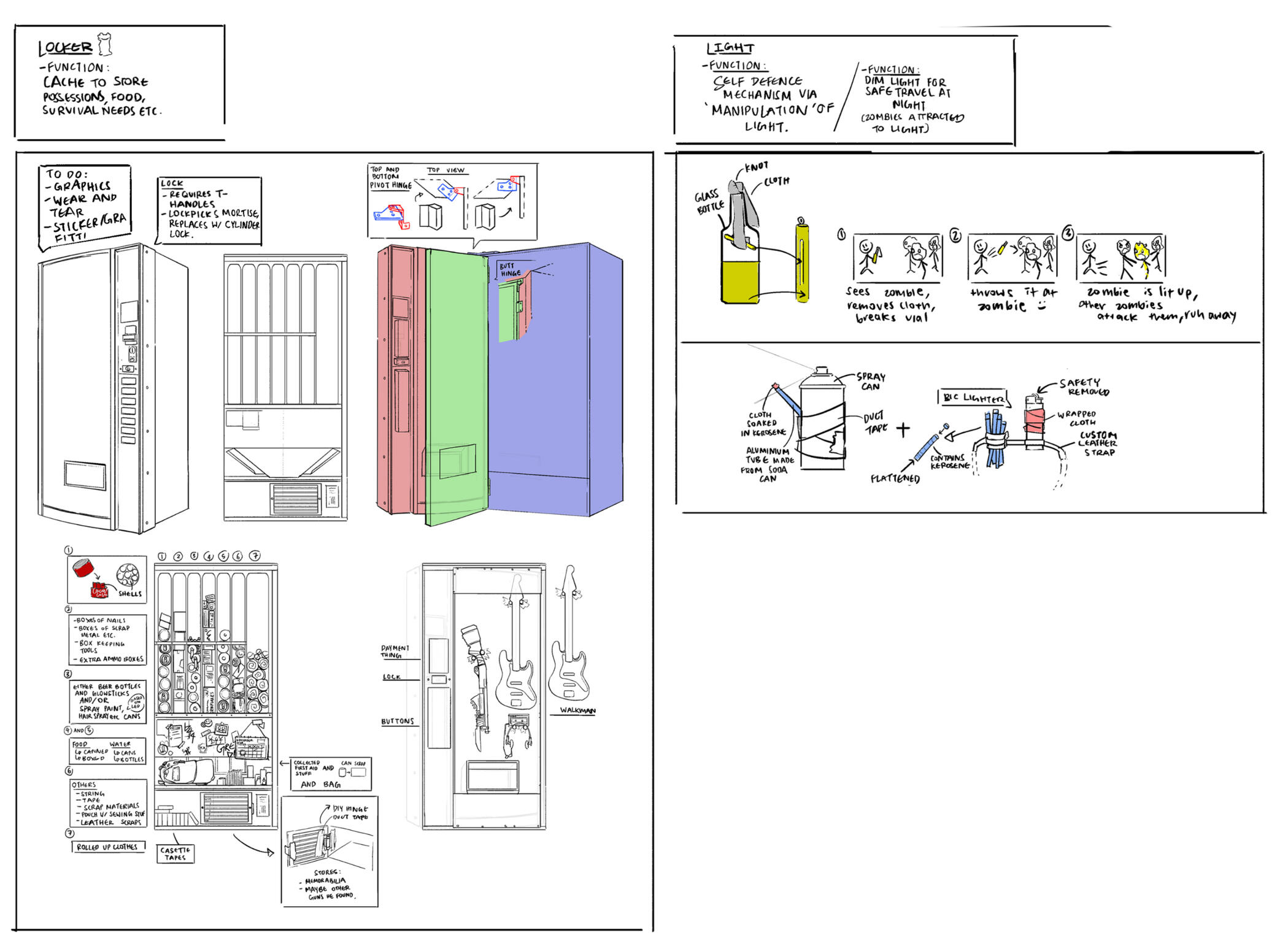 Below is the system that he has developed to continue surviving, spreading anarchy and hopefully one day finding his family through the havoc.